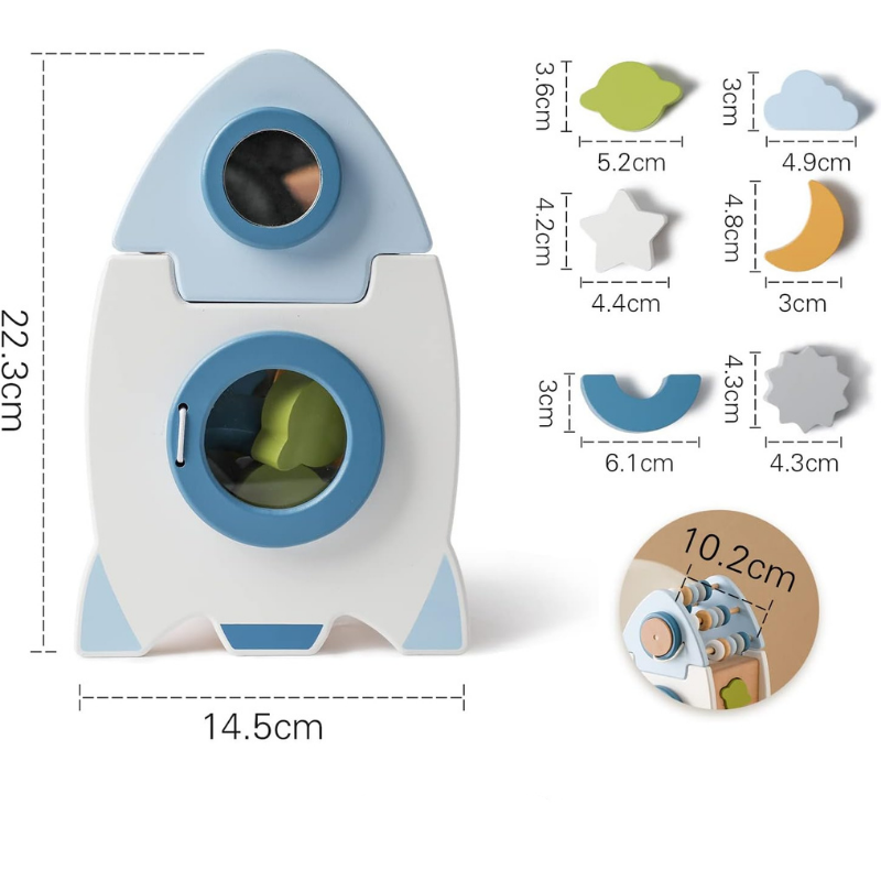 - 🚀MULTIFUNKTIONALE HOLZRAKETE: Dieses 5-in-1 Holzrakete kann die Krabbelfähigkeit eines Babys, die Hand-Augen-Koordination, die Feinmotorik, die Farberkennung sowie die Form. Das reichhaltige Szenendesign macht das ganze attraktiver.