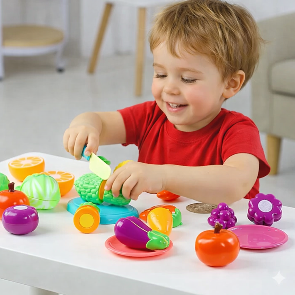 Kinder entdecken verschiedene Obst- und Gemüsesorten, lernen Namen, Farben und Formen kennen und entwickeln ein erstes Verständnis für gesunde Ernährung – ganz nebenbei beim Spielen.